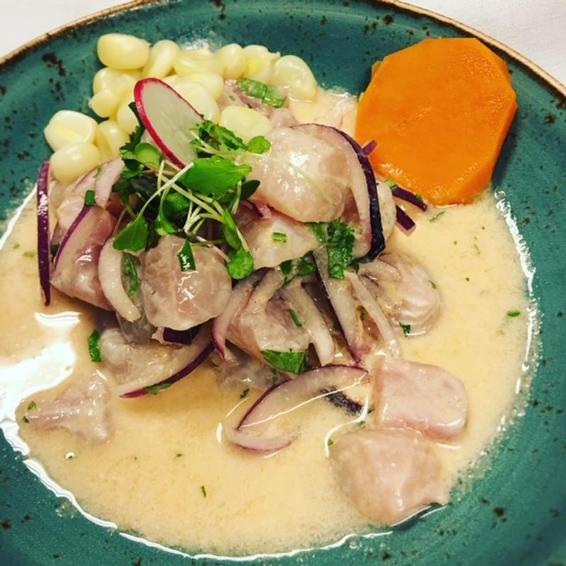 Fresh gulf fish marinated in leche de tigre and aji limo pepper,served with sweet potatoe and choclo(Peruvian corn)for a bold,traditional coastal flavor